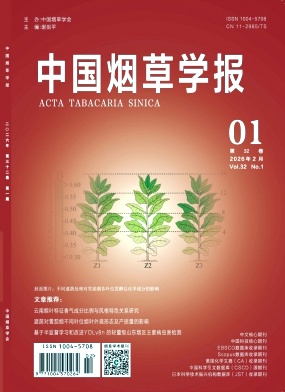 秦天;韩莹;雷佳;刘欣;端凯;宋鹏飞;夭建华;李正风;夏建军;黎娟;【目的】探究影响云南烟叶清香型风格特征形成的特征香气成分比例关系。【方法】采用气相色谱质谱联用技术(GC-MS)检测云南不同产地烟叶香气成分含量,并构建正交偏最小二乘判别分析(OPLS-DA)模型以筛选特征香气成分。通过比较浓香型、中间香型和清香型三种香型烟叶中特征香气成分的比例及气味活性值(OAV值)变化规律,解析其与风格特征的关联性。【结果】(1)云南烟叶以清甜香、正甜香及青香为主体香韵。烟叶香气成分总量以昆明、玉溪较高,楚雄烟叶较低,按官能团及香气前体物划分,不同产地烟叶香气成分组成存在显著差异;(2)基于香气物质变量重要性投影(VIP)值及其含量与烟叶香韵特征的关系,筛选出15种特征香气成分。确定其中8种成分(OAV>1)为关键香气物质,并发现2-甲基四氢呋喃-3-酮、5,6-环氧紫罗兰酮、青叶醛和2-正戊基呋喃在云南烟叶中具有显著更高的OAV;(3)吲哚/5,6-环氧紫罗兰酮、2-正戊基呋喃/5,6-环氧紫罗兰酮以及2-乙基吡啶/β-大马酮的值与清香型、清甜香香韵标度值呈显著正相关。【结论】确立了3组特征香气成分比值即吲哚/5,6-环氧紫罗兰酮、2-正戊基呋喃/5,6-环氧紫罗兰酮以及2-乙基吡啶/β-大马酮作为表征云南烟叶清香型特征的指标,并明确2-甲基四氢呋喃-3-酮等4种高OAV成分为体现云南烟叶清香风格的特征香气物质。